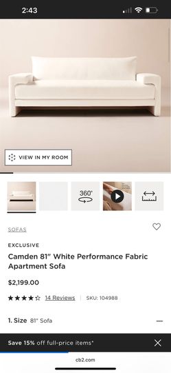 CB2 Stunning Camden Sofa 81”$750Halndle Bch, FL