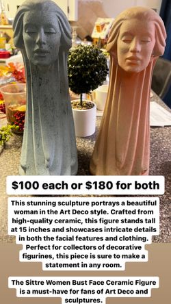ART DECO SITTRE WOMEN BUST FACE CERAMIC FIGURE 15" TALL$180Canyon Lake, TX