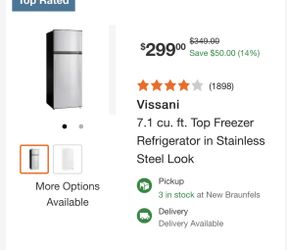 VISSANI 7.1 CU. FT. TOP FREEZER REFRIGERATOR MID-SIZE STAINLESS STEEL (56"H × 21-1/2"W × 21"D)$185Canyon Lake, TX