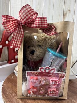 Valentines Gift Bag,Teddy Bear,Starbucks Tumbler And 6 Pieces Straw Topper’s $25Fontana, CA