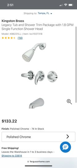 Kingston Brass Legacy Tub and Shower Trim Package with 1.8 GPM Single Function Shower Head - Polished Chrome 3 System Faucet$85Tampa, FL