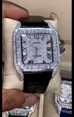 Cartier Santos Iced Diamond Watch – Stainless Steel w/ Black Leather Band$1,110Atlanta, GA