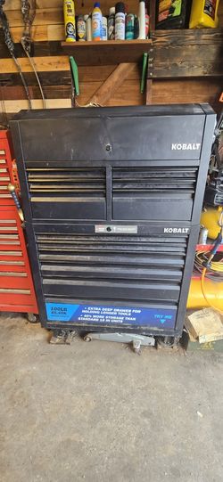 Kobalt 43.6-in W x 63.4-in H 12 Drawer Ball-bearing Steel Tool Chest Combo (Black), SHS41P12DB. - Slight Dent in LH Back Upper Corner.$500Farmers Branch, TX