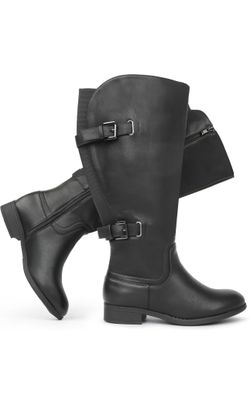 New Women’s Size 7.5 Women's Classic Extra Wide Calf Flat Heel Double Buckle Back Stretch Knee High Boots$40Cty Of Cmmrce, CA