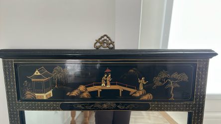 Large Hand Painted Chinoiserie Oriental Black Lacquered Mirror Espejo Espectacular $300Miami, FL