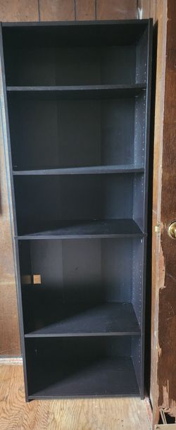 Tall Black Shelf In Good Condition some shelves are adjustable. has some mirrors on side. $35Albuquerque, NM