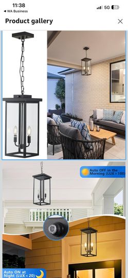 tewei 17.3'' Large Outdoor Pendant Lantern Light for Porch, 2-Light Black Metal Exterior Hanging Pendant Light Fixture Dusk to Dawn, Ceiling Hanging C$50Lawrenceville, GA