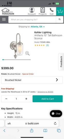 Kohler Lighting Artifacts 15" Tall Bathroom Sconce $185Lawrenceville, GA