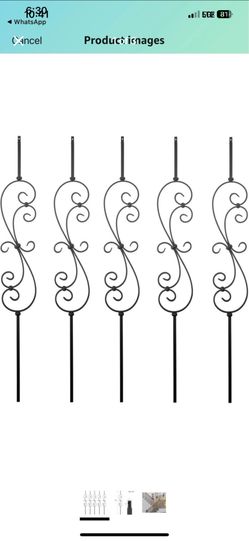 S10 - Wrought Iron Balusters – Set of 5 Deck Balusters - Decorative Metal Balusters for Decks – S Scroll - 1/2-inch Hollow Iron Spindles – Satin Black$60Lawrenceville, GA