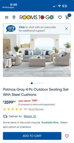 4 Pc Outdoor Seating Set $1,750Miami, FL
