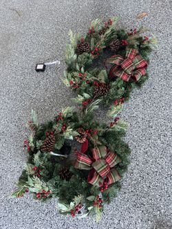 Two 30 in. Woodmoore Battery Operated Mixed Pine LED Pre-Lit Artificial Christmas Wreath with Timer and Plaid Ribbon$80Boca Raton, FL