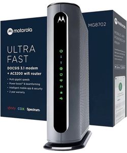 Motorola MG8702 DOCSIS 3.1 Cable Modem Wi-Fi Router with Intelligent Power Boost AC3200 Wi-Fi Speed$150Fort Lauderdale, FL