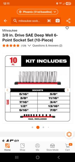 3/8 in. Drive SAE Deep Well 6-Point Socket Set (10-Piece)$20Laveen Village, AZ