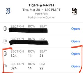 Padres Vs Tigers - Opening Day 3/26 Tickets $100San Diego, CA