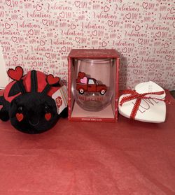 Rae Dunn heart coaster and Valentine's Day Gift Set with Wine Glass and American Greetings Plush Ladybug $17Fort Lauderdale, FL