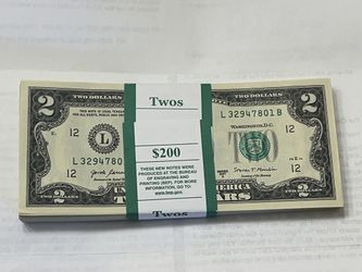 One Pack 100 Uncirculated Two Dollar Bills. ($200) in Federal Reserve Strap. Money$275Carmichael, CA