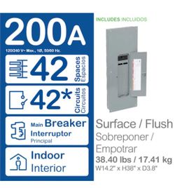 QO 200 -Amp 42 -Spaces 42 -Circuit Indoor Convertible Main Breaker Panel Plug-On Neutral$200Burbank, CA