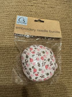 New Crafter's Square Embroidery Needle Pin Cushion - White w/ Pink Flowers$6Homer Glen, IL
