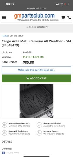 OEM Chevrolet Volt Weather Trunk Mat$40Kirkland, WA