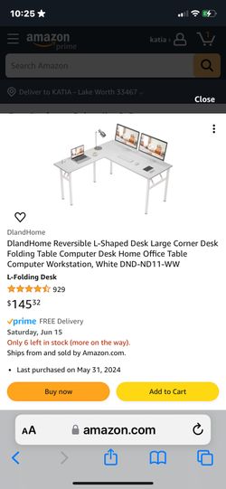 DlandHome Reversible L-Shaped Desk Large Corner Desk Folding Table Computer Desk Home Office Table Computer Workstation, $145Lake Worth, FL