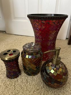 Burgundy Glass Bathroom Accessories $30Pomona, CA