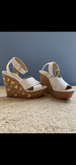 Michael Kors White Cork & Gold Butterfly Platform Strap Shoes$150Kenmore, WA