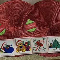 Two Red Placemats And 5 Christmas Ceramic Coasters $18El Centro, CA