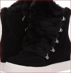 π’ Steve Madden Black Suede Wharton Faux Fur Wedge Boots Size 7 β $40 (OBO)π’$40Fresno, CA