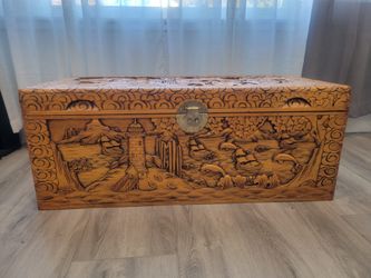 Carved Camphorwood Chest with Oriental Fish and Harbor Lighthouse$250Corona, CA