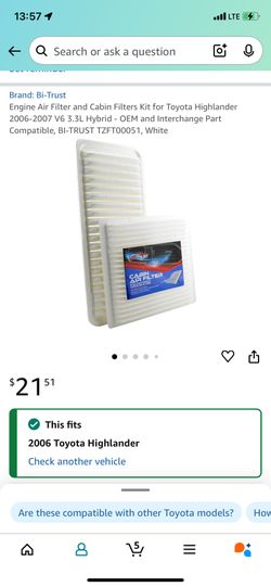 2006 TOYOTA HIGHLANDER CABIN AND ENGINE FILTER COMBO$22Phoenix, AZ