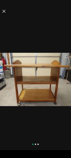 Solid Oak Wood Cart With Pop Up Extension. In Excellent Condition $175Batavia, IL