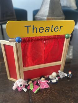 PUPPET THEATER World Market Portable Japan Africa Holland Elephant Poodle Pirate Red Curtain Children’s Pretend Play Toy Wooden Collectible $15La Habra Heights, CA