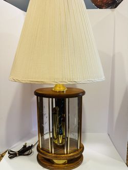 Mid Century Don Ward Etched Glass Panel Wood & Brass Table Lamp Vintage $125Fontana, CA