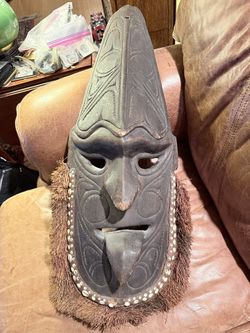 Hand-Carved Melanesian / Papua New Guinea Style Mask β Shell & Fiber$175Bothell, WA