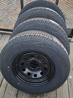 4 New ST 235-80-16 Load G 14ply 110psi Trailer Tires 6 Lug 6x5.5 Steel Black Wheels FREE Delivery Inland Empire or PickUp Moreno Valley Menifee$1,100Menifee, CA