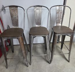 (3) 30" Clear Coated Etched Bar Stools with Back & Wood Seats