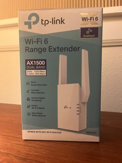 TP Link Wi-Fi 6 Range Extender — Brand New (AX1500, Dual Band)$40Tacoma, WA