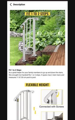 VEVOR Wrought Iron Handrail Fits 1 or 2 Steps Handrail Picket #1 Outdoor Stair Rail with Installation Kit for Outdoor Steps Hand Rails$45Moreno Valley, CA