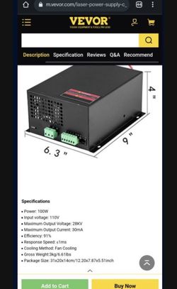 Laser Power Supply Co2 Laser Engraver 100w Laser Power Engraving Supplies$55Moreno Valley, CA