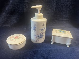 Vintage Floral Porcelain Vanity Set – Soap Dispenser + Trinket Boxes (3-Piece Set)$10Vista, CA