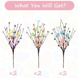 6Pcs Artificial Easter Eggs Picks 15inch Spring Easter Egg Stems with Colorful Berries Cute Flowers$12Palmview, TX