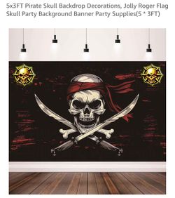 5x3FT Pirate Skull Backdrop Decorations, Jolly Roger Flag Skull Party Background Banner Party Supplies(5 * 3FT) $10Hesperia, CA