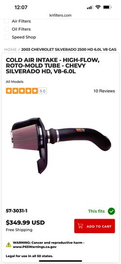 K&N Intake Chevy 6.0 Engine 2001-2007$120Chandler, AZ