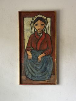 AMEDEO MODIGLIANI STYLE VINTAGE MODERN CUBIST PORTRAIT OIL PAINTING FAMOUS 1960s$495Pasadena, CA