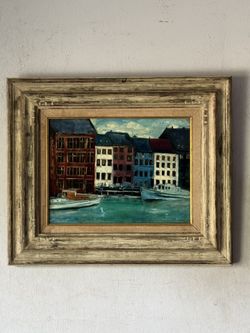 ALICE STATCH VINTAGE MODERN BOAT DOCK CITYSCAPE OIL PAINTING OLD LANDSCAPE 1960s$495Pasadena, CA