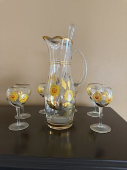 Pitcher with Stirrer and 6 matching Cups Vintage Hand painted Sunflowers$35Hialeah, FL