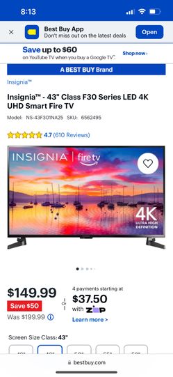 Insignia Firetv Edition F30 43” Inch Tv$100City Of Industry, CA