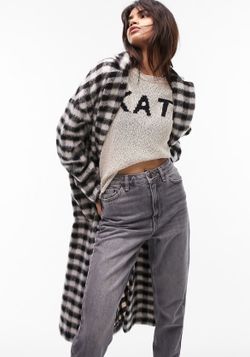 NEW TopShop Check(ered) Longline Coat (B&W) Trench Coat Style$40Los Angeles, CA