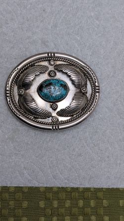 Silver Belt Buckle With Turquoise Navajo Signed By Artist EB $325Fallbrook, CA