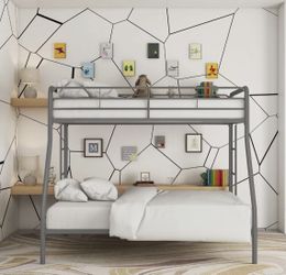 Gray Grey Metal Twin Over Full Bunk Bed Kids Teens Dorm Ladders 450 lb Capacity$120Pompano Beach, FL